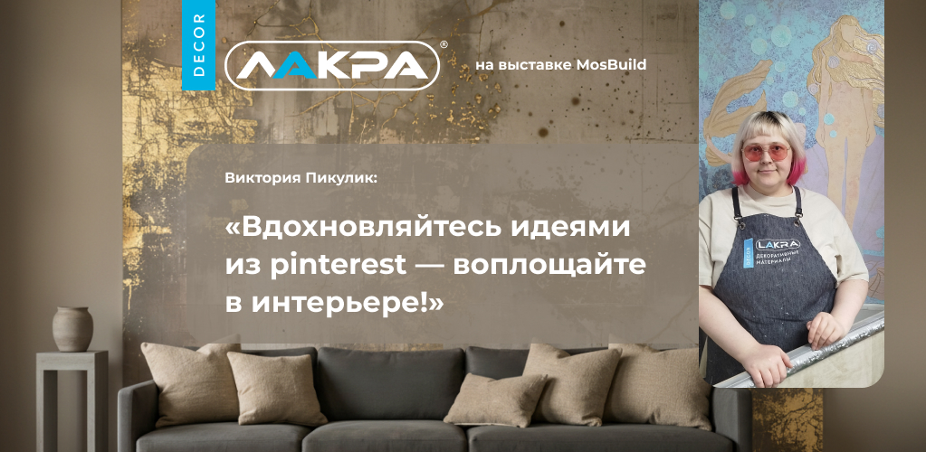 Хотите перенести понравившиеся идеи из Pinterest в свой дом, но не знаете, с чего начать? Приглашаем на выступления технолога по декоративным покрытиям ЛАКРА ДЕКОР Виктории Пикулик на выставке «Мосбилд»!